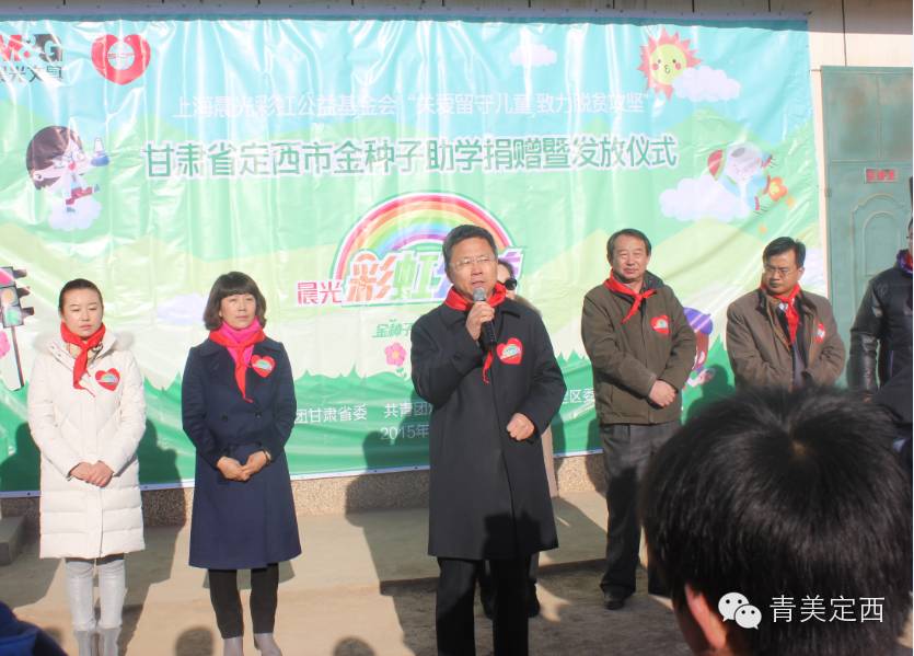 12月25日上午在安定区花沟学校举行了“关爱留守儿童 致力精准助学”捐赠仪式。团省委副巡视员芦铁平、定西市政府副市长李斌、团市委书记田学荣、安定区政府副区长冯毓琴及安定区团委、安定区教育体育局、西巩驿镇党委负责人参加了捐赠仪式。