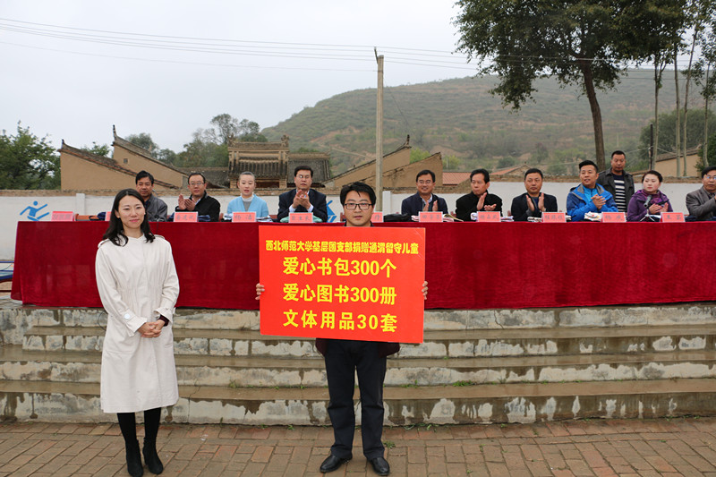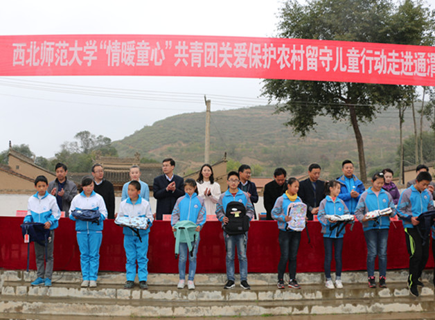 据悉,此次活动西北师范大学团委为通渭县留守儿童捐资爱心书包300个,爱心图书300册,文体用品30套,并邀请专业心里辅导老师和学生开展互动交流活动,对培养他们自信、自强、自立的健全人格,解决留守儿童学生的实际困难、加快推进通渭县教育扶贫具有十分重要的意义。