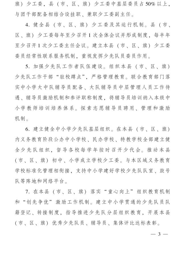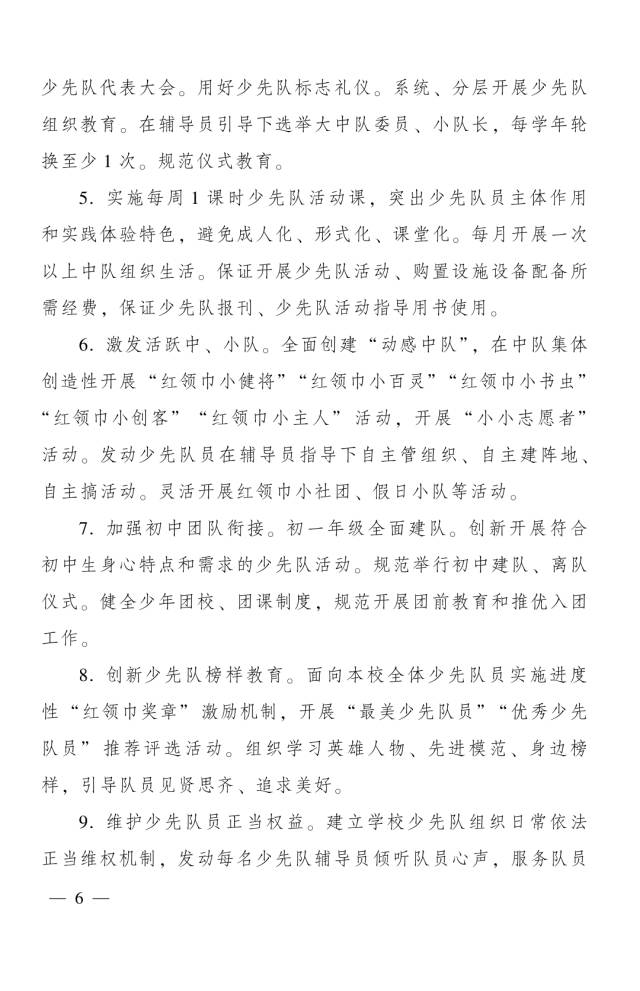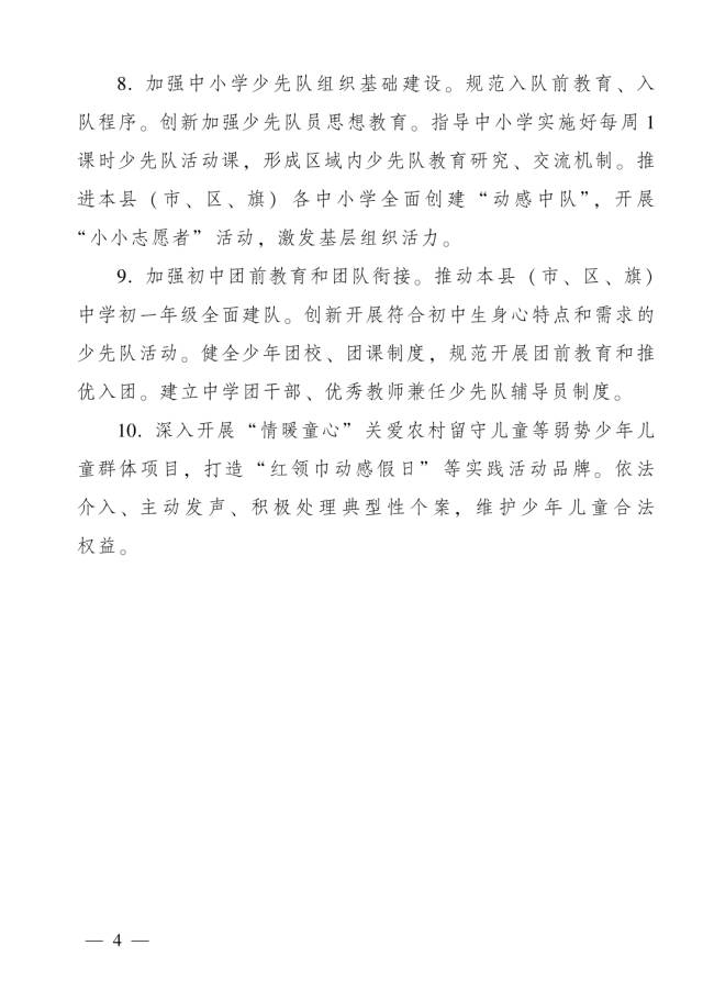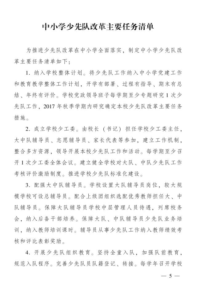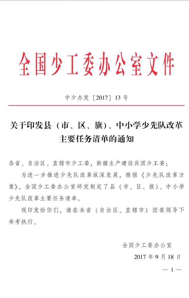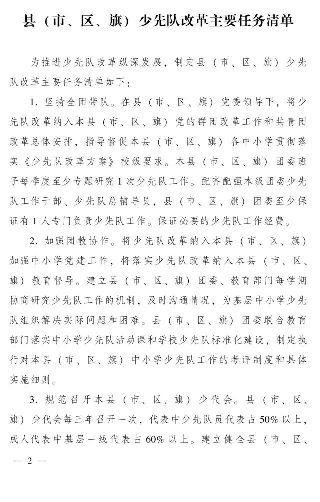 关于印发县(市、区、旗)、中小学少先队改革主要任务清单的通知