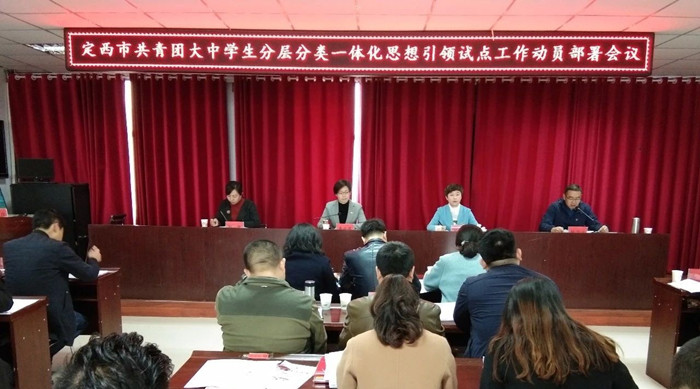 10月16日,定西市大中学生分层分类一体化思想引领试点工作动员部署会在渭源县清源中学召开。团市委书记李安花出席会议并讲话,渭源县政府副县长郭凯,市教育团工委书记杨海生,各县区团委书记、教育团工委书记,市直学校团委书记,渭源县中职中学团委书记共计50余人参加会议。会议由团市委副书记杨洁主持。