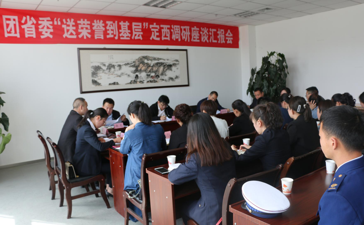 为坚决贯彻落实习近平总书记在决战决胜脱贫攻坚座谈会上的重要讲话精神和省委、省政府打赢脱贫攻坚战的工作要求,牢固树立共青团大抓基层的鲜明导向,用身边的先进典型引领带动广大团员青年积极投身决战脱贫攻坚、决胜全面小康的生动实践,5月14—15日团省委副书记赵才让同志一行到定西开展“送荣誉到基层”活动,调研社区、非公企业基层团建工作和青年之家运行情况,与各县区团委、直属团(工)委书记及青年代表座谈,出席团市委举办的“学习寄语精神 展现青春担当”定西市优秀青年青春故事分享会,将2019年度“甘肃省五四红旗团支部”荣誉称号奖牌送至陇西合伙人团支部。
