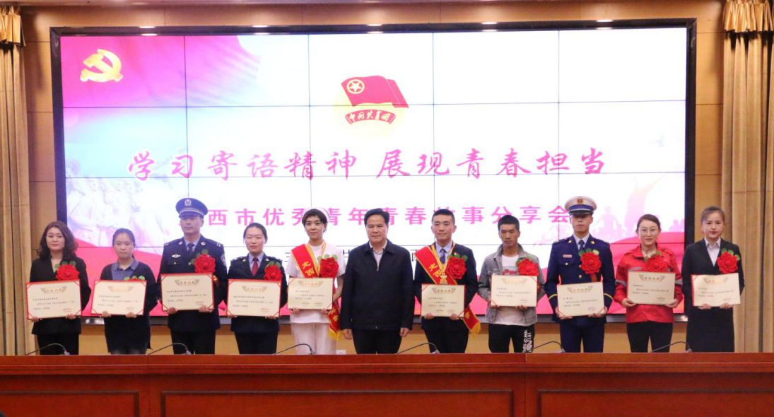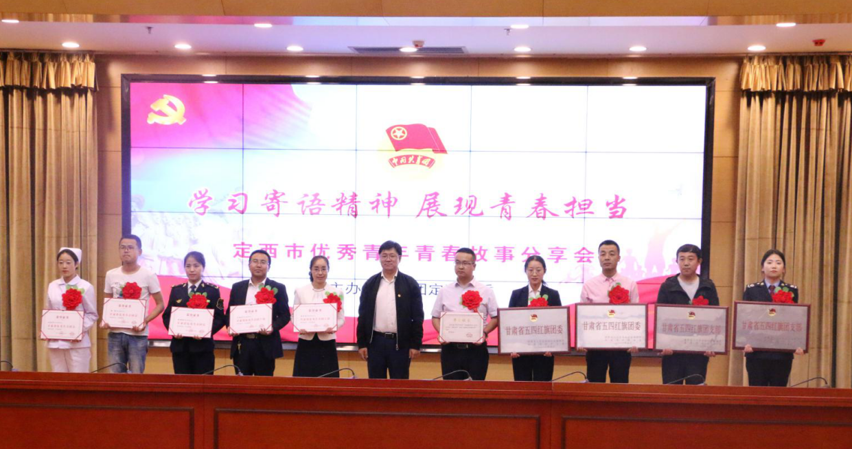 狄生奎同志为荣获全市青年五四奖章、优秀团员、团干部、团组织代表颁发奖章、证书 市扶贫办、市农业农村局、市公安局、市司法局、市教育局、市卫生健康委、市税务局、定西公路局、定西高速公路处、定西市第二人民医院、定西市消防救援支队、市烟草公司、市公安局安定区分局负责同志,荣获省、市优秀团员、团干部、团组织代表;中央及省属驻定有关单位、市属国有企业、消防救援、医院等行业的青年职工代表,共计160余人参加了此次分享会。