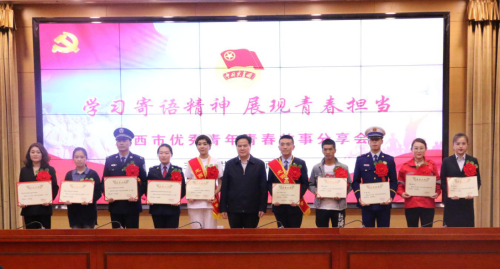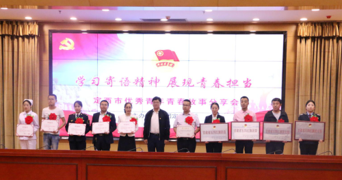 在青春故事分享会上,大家一起学习了习近平总书记五四寄语精神,市委副书记狄生奎同志、团省委副书记赵才让同志分别致辞、讲话,为荣获2019年度全省向上向善好青年,省、市“优秀团员”“优秀团干部”“五四红旗团委”“五四红旗团支部”,“定西青年五四奖章”等优秀青年和先进组织代表颁发证书、奖牌、奖章,定西市5名优秀青年代表分别讲述了各自的青春故事。团市委书记谢晓妍同志主持分享会。  狄生奎同志致辞 狄生奎同志在致辞中指出,近年来团市委紧紧围绕市委、市政府中心工作,充分发挥职能作用,团结带领全市广大团员青年为助推脱贫攻坚、助力经济发展发挥了生力军和突击队作用,全市共青团各项工作取得了显著成效。全市各级团组织要切实加强对青年工作的领导,关心关注青年成长,引导广大青年努力争做在线上线下捍卫党和国家利益的生力军、在经济社会发展各条战线攻坚克难的生力军、在基层一线服务人民群众的生力军。全市广大团员青年要树立远大理想抱负,志存高远、勤学善思,不惧风雨、勇挑重担,积极弘扬和践行社会主义核心价值观,不辱时代使命,勇立时代潮头,争做时代先锋,展现青春担当,让青春在决战脱贫攻坚、决胜全面小康、建设幸福美好新定西的伟大实践中绽放绚丽光彩!  赵才让同志讲话 赵才让同志在讲话中强调,各级团组织要持续加强团干部、团员青年思想政治教育,充分运用“青年大学习”平台推动团员青年学习制度化常态化,提升全省网上主题团课参与率和覆盖面。要通过实施“青春扶贫”六项行动、“乡村振兴·青年建功”行动,引领广大团员青年聚焦全面建成小康社会大局,助力脱贫攻坚。要牢牢把握团的根本任务、政治责任、工作主线,持续深化基层团组织规范化建设,严肃团的“三会两制一课”制度,继续扩大基层团的有效覆盖。各级团干部要始终坚持和加强党的领导,坚决做到“两个维护”,以实际行动坚决维护习近平总书记在党中央和全党的核心地位,坚决维护党中央权威和集中统一领导。