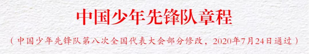 四、我们队的目的:团结教育少年儿童,听党的话、跟党走,爱祖国、爱人民、爱劳动、爱科学、爱社会主义,学习和实践社会主义核心价值观,树立远大理想,培养优良品德,勤奋学习知识,锻炼强健体魄,培养劳动精神,从小学先锋、长大做先锋,立志为建设中国特色社会主义现代化强国贡献力量,努力成长为社会主义现代化建设需要的合格人才,成长为能够担当民族复兴大任的时代新人,做共产主义事业的接班人。