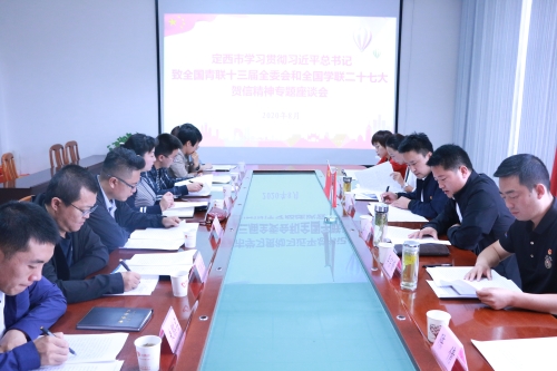 8月20日上午,定西团市委召开学习贯彻习近平总书记致全国青联十三届全委会和全国学联二十七大贺信精神专题座谈会。团市委领导班子成员,十三届全国青联委员、渭源县水土保持站技术站站长陈鹏娟,安定区团委及部分市直团工委负责人,部分省、市青联委员代表参加座谈会。